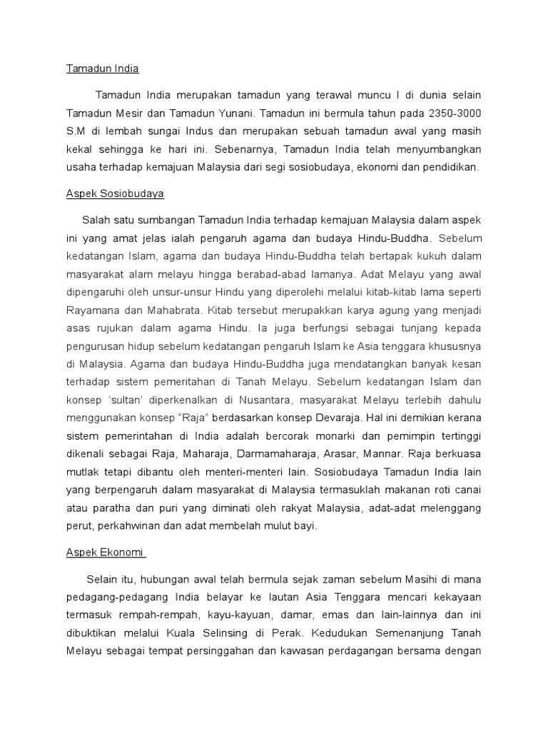 Tamadun India Di Malaysia Docx Pengaruh Unsur Tamadun India Dalam Kehidupan Seharian Masyarakat Malaysia Tamadun India Bermula 6 000 Tahun Dahulu Di Course Hero