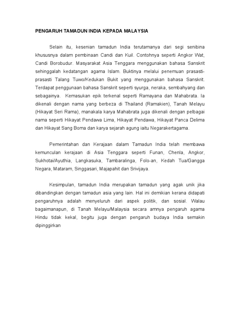 Pengaruh Tamadun India Kepada Malaysia Dan Dunia1 Pdf